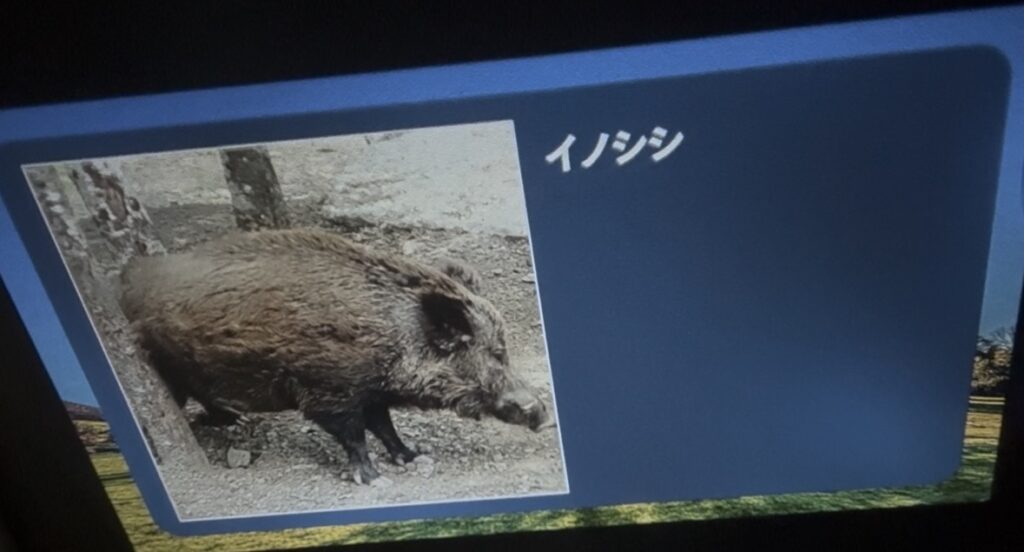 また、思わず笑ってしまったのがイノシシの映像です。 おしり付近を木に擦り付けて身体を搔いている姿を見て「おしり、ぷりぷり〜!」と大はしゃぎする双子たち。 人間とは全く違う体つきの動物なのに、それが「おしり」だと正確に理解し、さらにその動きを言葉にする。Astrumを通じて成長を感じます。