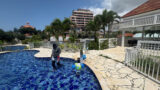 小さい建物に興味津々に歩き回るだろうと読んでいましたが、我々親の予想通りには全くいかず残念ながらほぼ無関心でした。とても楽しそうにしてましたが、小さな世界の建物よりも、足元の砂利、排水口の金具に興味津々でした(笑)。砂利をつまんで渡してくれたり、砂利を型はめのごとく排水口の金具の隙間に落としたり、すぐやめさせましたが小石を口に入れたりしてました。まさしく知ってる人は知っているこれが本当の「砂利boy」でした。