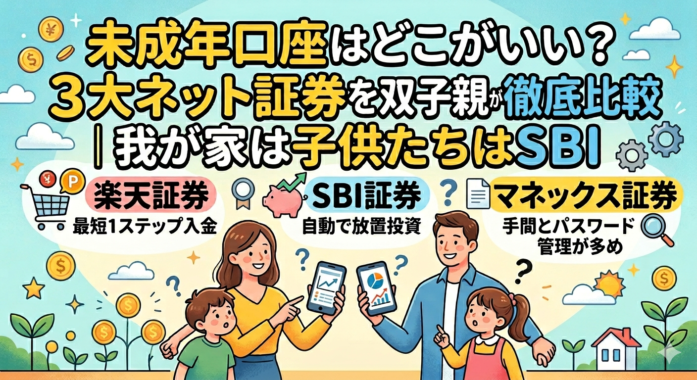 この記事では、主要3社(SBI・楽天・マネックス)の公式情報と、実際に開設して分かった「未成年口座ならではの入金の手間」をベースに比較します。