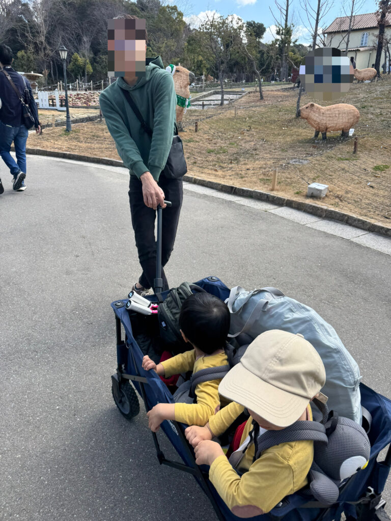 - 万博記念公園・ハーベストの丘: とにかく広大。駐車場から遊び場までが2歳児には遠いので、ワゴン移動は「救世主」です。また寝ている子供をそのまま運べます。