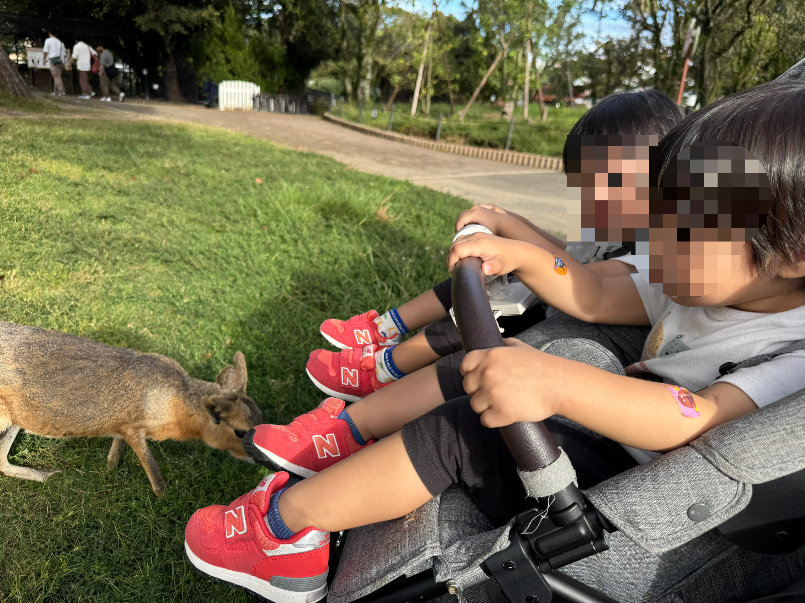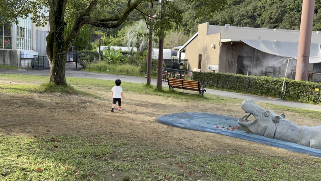 ですので、子供たちも動物見る以外にも伸び伸びと過ごすことができ、各々楽しんでいました。兄は滑り台で遊んだり、弟はとにかく走り回ったり。