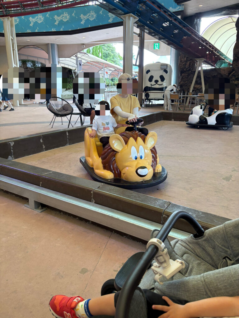乗り物を乗り続けたり、施設内を駆け抜けるジェットコースターを「電車!電車!」と叫びながらずっと見てました。
